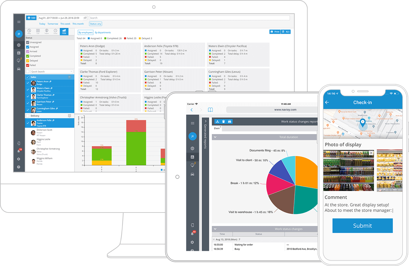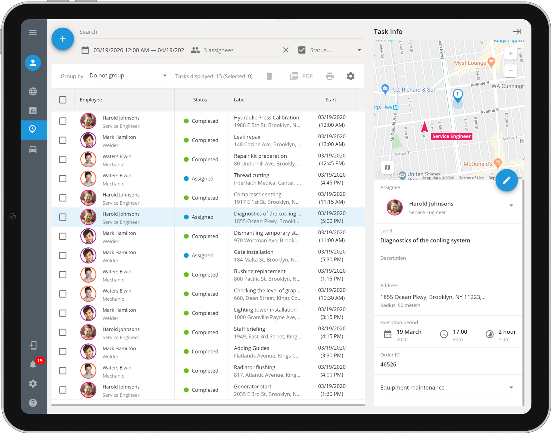 Assign jobs intuitively based on employee location, skill set and current workload. Effortlessly import tasks from files and third-party aplications.
